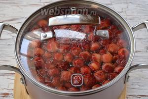 Вишню перебрати, помити. Опустити у воду з цукром.