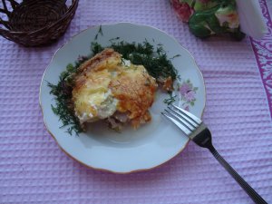 Через зазначений час поверх кабачків утворюється апетитна золота скоринка і страва готова до вживання.