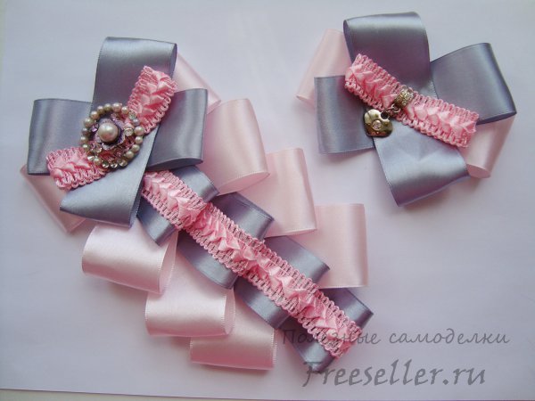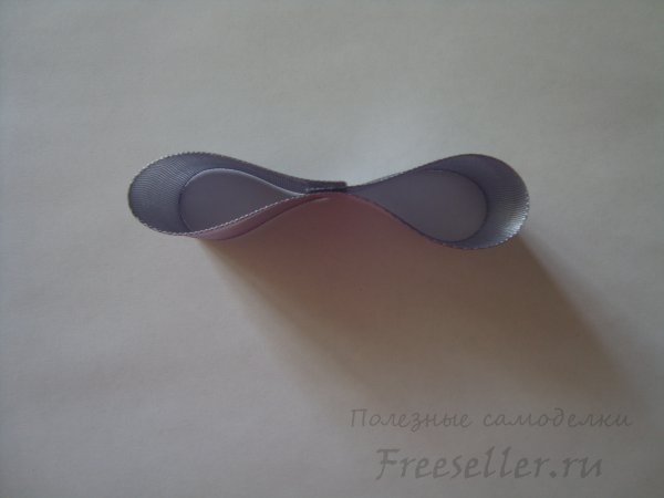 З стрічки сірого кольору відокремте відрізи по 18 см і склейте аналогічні бантики в подвійній кількості.