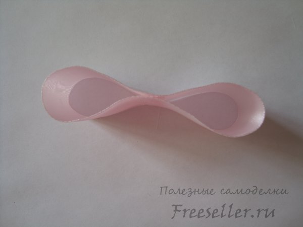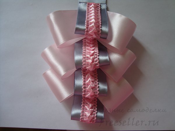 Знадобиться ще стрічка рожевого кольору довжиною в 24 див. Створіть з неї такий бант.