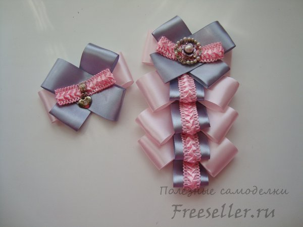 За аналогічним принципом можна створити бантик для волосся і вийде шкільний комплект.