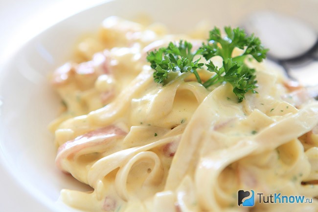 Чудове блюдо високої італійської кухні «спагетті карбонара», абсолютно не складний у виконанні, його можна приготувати вдома самостійно, навіть не володіючи особливим кулінарним досвідом. Цей соус перетворить звичайні макаронні вироби у вишукане і святкове блюдо і на будь-якому столі стане безпрограшним варіантом. При цьому на їх приготування піде мінімум часу.