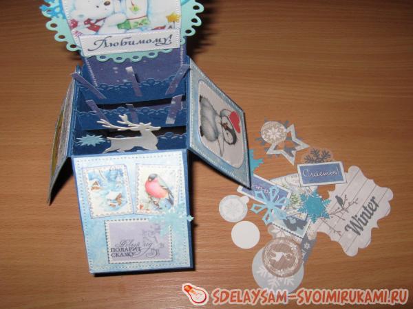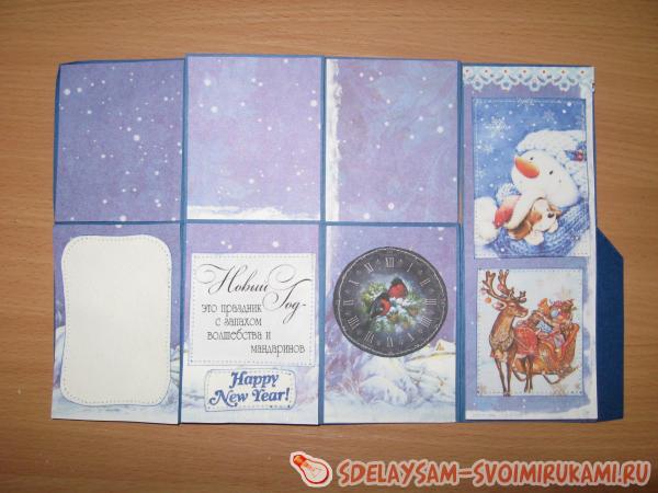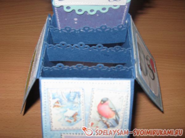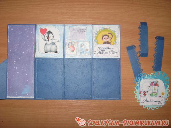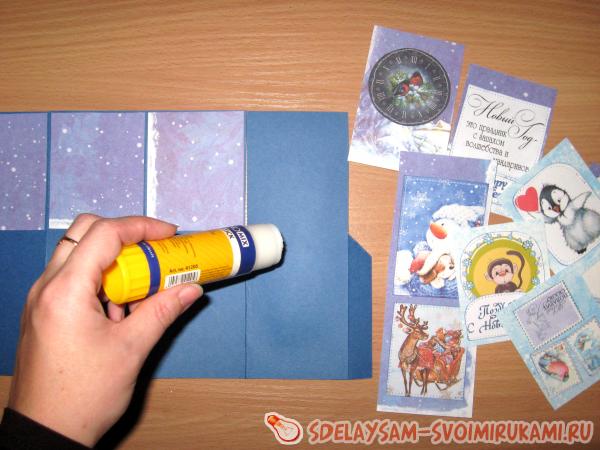 Тепер склеюємо листівку язычку і вклеюємо в неї перегородки.