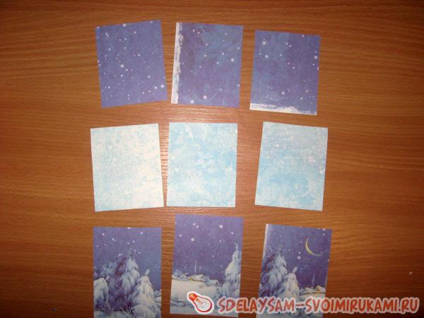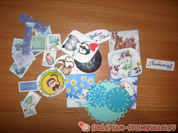 Тепер на перегородки приклеюємо різні зимові і новорічні висічки.