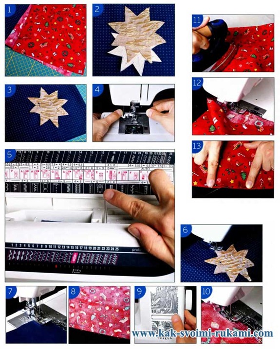 6. Пришиваємо зірку точно в край. Деталь з аплікацією отутюживаем.