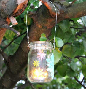 Ось так красиво висить підсвічник зі скляної банки на дереві на дачі