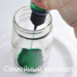 Щоб було акуратніше, можна нанести блиски спочатку на одну половину банки. Коли ця сторона висохне, зробити на решті частини банки.