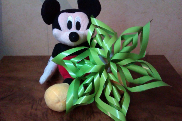 7. Потім знову перевертаємо і склеюємо. Загалом, повторюємо, поки смуги не закінчаться. У підсумку вийде ось такий промінь. Всього потрібно 6 штук. Тобто, повторюємо всі дії і для решти 5 променів.