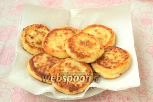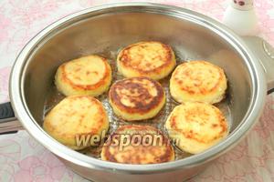 Коли підсмажиться одна сторона, сирники перевернути і обсмажити з іншого боку.