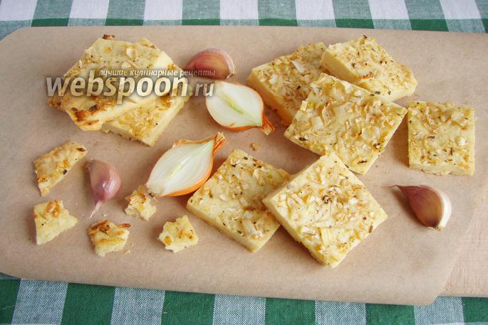 Для приготування печива нам знадобиться: борошно, яйце, розпушувач, вершкове масло, цибулю, часник, спеції.