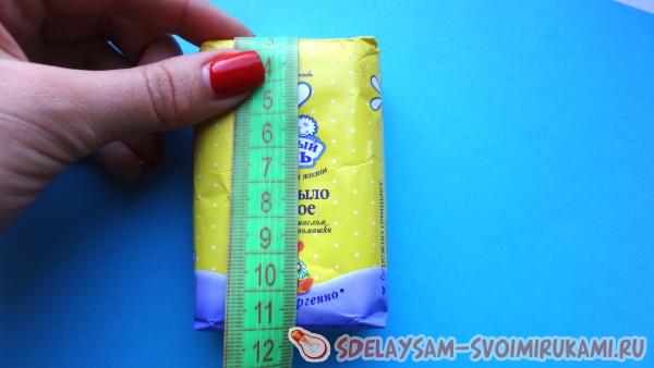 2.Тепер вимірюємо довжину лицьовій і бічній частині майбутнього подарунка.
