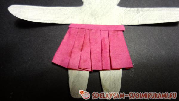 12.Зверху приклеюємо смужку – це буде пояс спідниці.