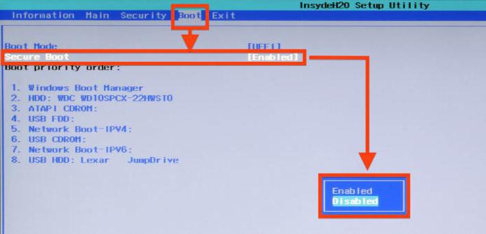 Тепер нам потрібно зайти в меню Security (іноді Boot) і відключити режим Secure Boot (виставляємо параметр на Disable). До речі сказати, саме цей режим відповідає за перевірку сертифіката завантажувача.