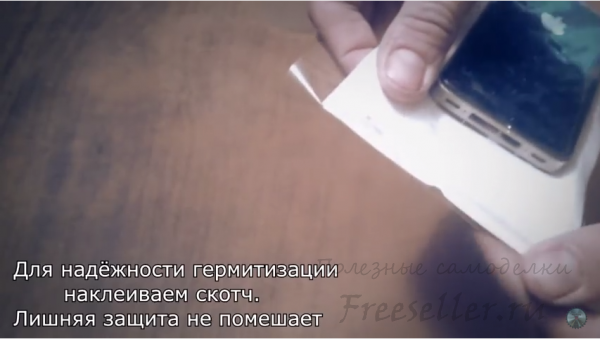 Так-так саме скотч. Для зйомки на невеликий час вам цього цілком вистачить, він не відклеїться. Але перед тим як використовувати телефон в воду перевірте ваш кейс, попередньо засунувши туди папір і потримати пару хвилин під водою, щоб перевірити його на герметизацію.