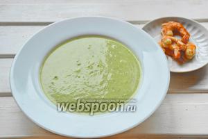 Приготування страви за рецептом «Крем-суп із зеленого горошку і брокколі з тигровими креветками»: