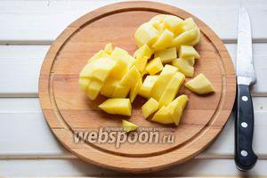 Додати картоплю і злитий овочевий відвар. Варити до м’якості картоплі, при необхідності долити воду, трохи присолити.