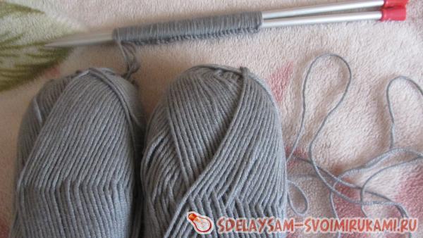 В’яжемо основне полотно, на великих спицях воно буде готовий за два-три години. Набираємо подвійний ниткою 35+2 кромочні петлі, при бажанні можна зробити шарф ширше.