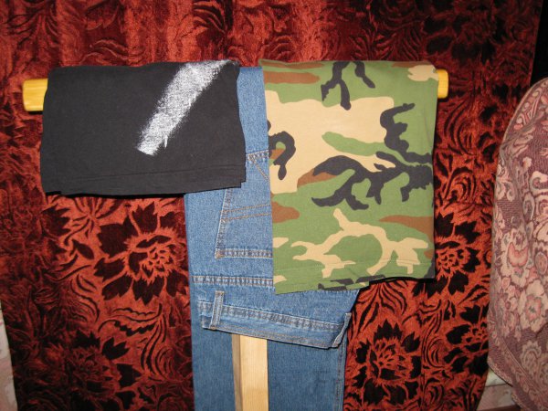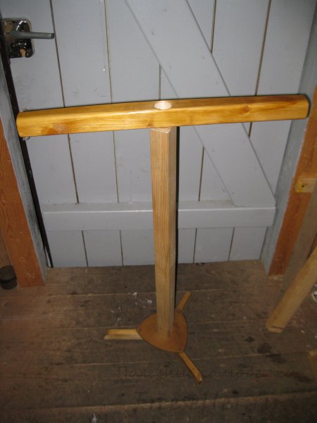 Простенька горизонтальна вішалка для одягу, зроблена на базі універсальної підставки, виготовлення якій описувалося раніше.