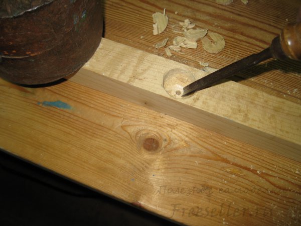 Видаляємо зайву деревину з отвору за допомогою напівкруглої стамески.