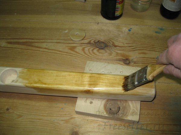 Тому покриваємо вішалку одним шаром лаку по дереву.
