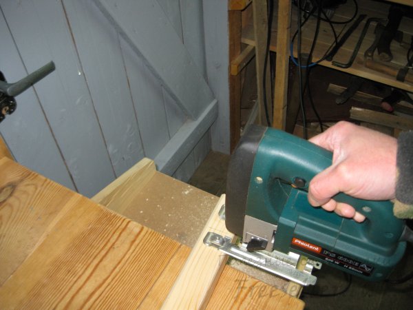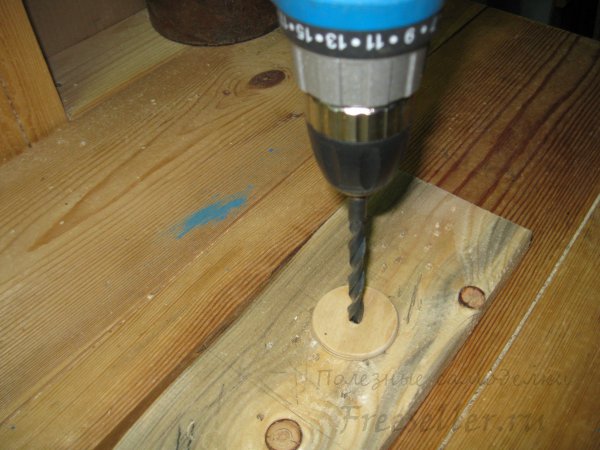 Спочатку кільцевої пилкою, пропиливаем в центрі бруска глухе отвір, глибиною приблизно 2,5-3 див.