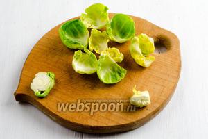Зрізати з низу кожної кочережки 0,5 см, тим самим звільнивши зовнишні листя. Зрізану нижню частину кочанчика викинути. Гострим кінцем ножа вирізати качан і відокремити як можна більше внутрішніх листя. Листя розібрати по одному.