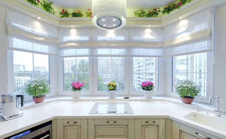 Неймовірно красиво виглядають живі рослини на підвіконні еркера — вони ніби підкреслюють його архітектурні лінії.