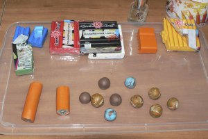 – різнобарвна полімерна глина, – канцелярський ніж, – зубочистка або товста голка для різання дірочок у готових намистинах, – нитка і різнокольорові намистини для складання готових бус.