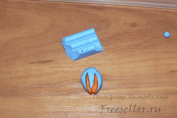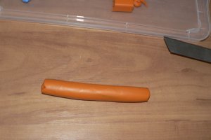Заповнимо надрізи пластинками з помаранчевої полімерної глини.