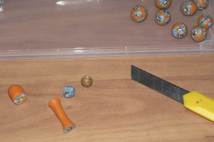 З відходів полімерної глини різних кольорів формуємо заготовки намистин і потихеньку обклеюємо нашими квітковими пластинами.