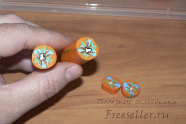 Тепер починаємо акуратно стискати коло, намагаючись зберегти малюнок без деформації – це найскладніша частина роботи. Чим якісніше полімерна глина, тим краще вийде зберегти малюнок квітки в отриманій «тростини». Наш квітка стискається і тепер «живе» в межах отриманої трубки, при нарізуванні кожна платівка міститиме саме його обриси.