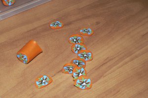 Даємо трубці полежати півгодини і нарізаємо на тонкі пластинки. Трубку можна стискати до різної товщини, від цього буде залежати розмір квітки на платівках.