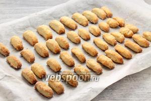 Перекладаємо бруски на деко, застелений промасленим пергаментом. Випікаємо в розпеченій духовці при температурі 180°С близько 25 хвилин.