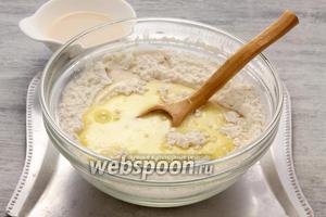 Вливаємо активовані дріжджовий розчин і розбещену масло — приступаємо до замісу.
