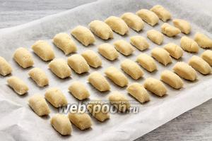 Розрізаємо впоперек, під тиском ножа заготовки втрачають у висоті і трохи подовжуються.