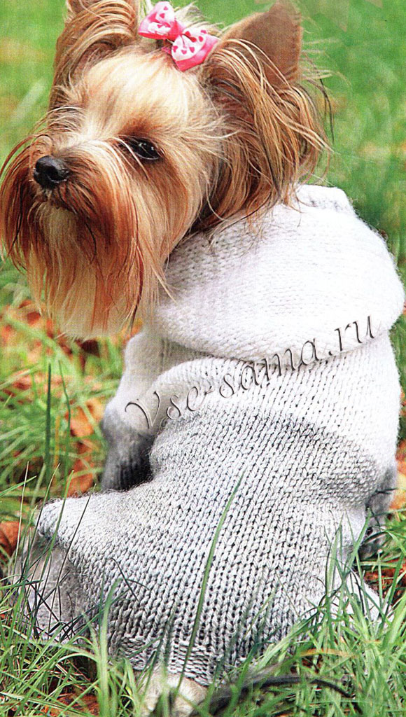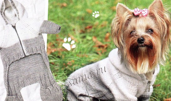 По краю капюшона набрати на спиці і провязать 4 ряди пряжею сірого кольору гумкою, 1 ряд пряжею білого кольору, закрити. Зшити рукави для лап. Вшити замок.