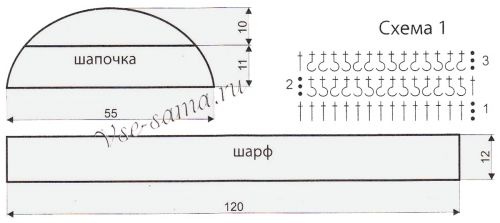 Схема викрійки для в’язання комплекту: