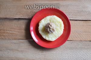 В серединку викладаємо кулька паштету.