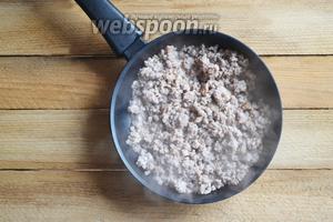 Фарш викладаємо на розігріту сковороду і, періодично помішуючи, доводимо до готовності.