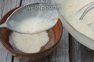 І знову, не втрачаючи ні секунди, виливаємо желатин в основний крем, тонкою цівкою, активно заважаючи при цьому віночком від руки. Накриємо і приберемо в холод трохи схопитися.