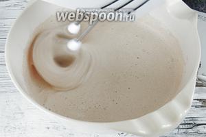 Збиваємо тростниковыхй цукор з яйцями і дрібкою солі до посветления, приблизно 4 хвилини. Додамо також пряникові спеції.