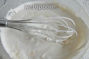 І ось саме зараз, вводимо збиті вершки. Акуратно перемішуємо вінчиком від руки.