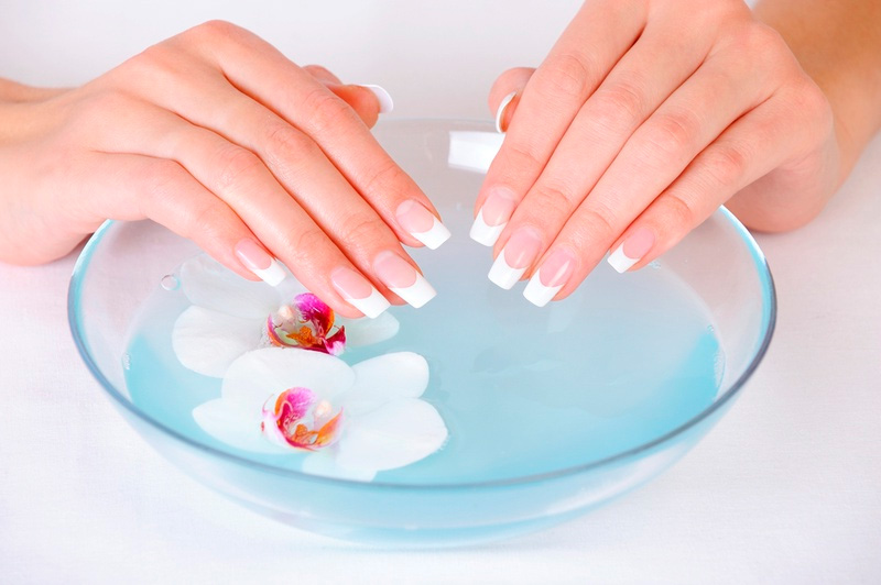 Наступний етап, який точно сподобається всім представницям прекрасної статі, — ванночки. У невелику ємність наберіть теплу воду і додайте один або кілька компонентів: сіль для ванн, ароматичні масла і спеціальні трав’яні збори. Якщо в будинку немає нічого схожого, то ви можете використовувати звичайне рідке мило. Його потрібно додати у воду і злегка розмішати, не варто збивати вміст в піну. Опустіть руки в ванночку на п’ять-сім хвилин і розслабтеся. Якщо ви дбаєте і про шкіру рук, то можете придбати спеціальні склади для ванночок.