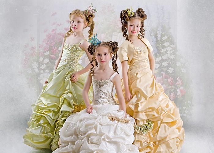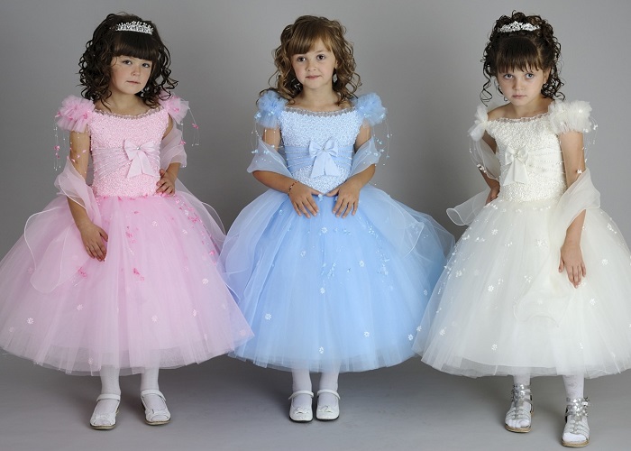 Дизайнери дитячих брендів заздалегідь подбали про туалетах для маленьких панянок. Вони щедро обсипали паєтками, стразами спідниці-дзвін, «американки», рукави-ліхтарики, не поскупилися на текстильний декор і калейдоскопічну розсип фарб. Стрічки розвіваються, широкі подоли з оздобленням, атласні квіти на ліфі в блиску гірлянд і куль виглядають дивовижно. Копії наряду улюбленого казкового персонажа маля відчує свою причетність до світу чарівництва і магії. Бальний наряд від принцес Рапунцель, Софії, Бель, Попелюшки виділить її серед однолітків.