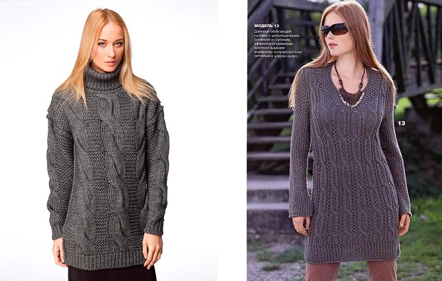 Ось, наприклад, на фото модні подовжені светри 2016. Модель праворуч можна пов’язати з досить простою схемою, зазначеної нижче. Як бачите, стати володаркою приголомшливого светри досить просто.
