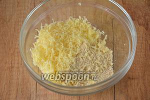 Твердий сир натерти на дрібній тертці. У глибокій мисці з’єднати сир і панірувальні сухарі.