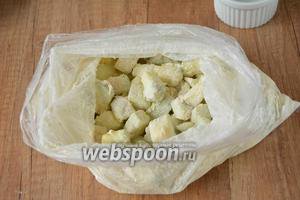 Викласти кабачки в пакет, додати борошно. Добре потрясти пакет, щоб кабачки були в паніровці з борошна.