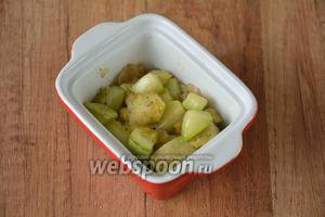 Обсмажені кабачки викладаємо в порційні форми. Даємо кабачків злегка охолонути.