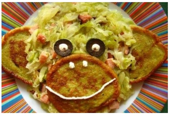 Крім цього приготуйте трафарет мордочки мавпочки, згідно з яким будемо формувати салат на тарілці.