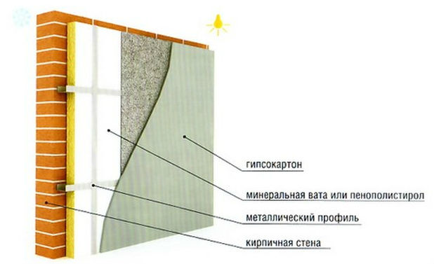 Потім необхідно обробити стіну антигрибковим засобом. В процесі експлуатації на ній неминуче буде конденсуватися волога. Для запобігання появи плісняви та грибка застосовуються спеціальні склади. Монтаж утеплювача можна починати тільки після остаточного висихання стіни. Якщо вибір був зупинений на м’яких рулонних матеріалах — слід встановити несучу конструкцію. Зазвичай для цього використовується оцинкований профіль для гіпсокартону.